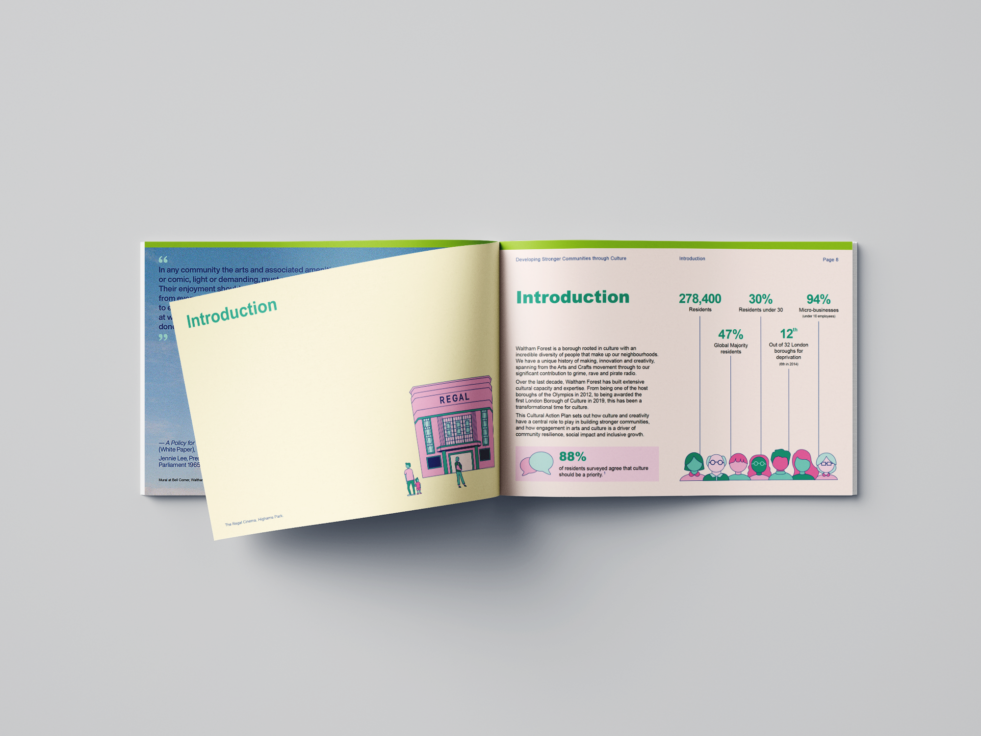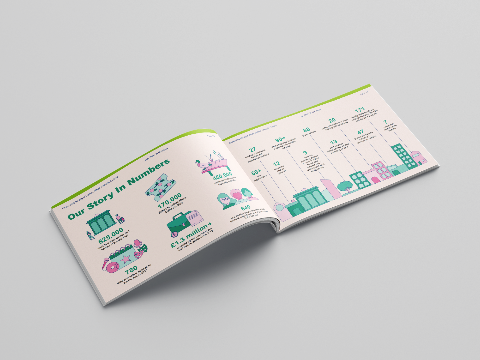 Following on from the survey, Waltham Forest commissioned me to create the Council’s Cultural Action Plan — both for digital distribution and a limited print run — which detailed and explored all their findings. The full report can be downloaded at the bottom of this page.